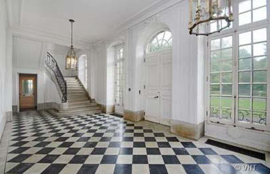 We’ll wipe the sand off our feet, walk back up to the home’s entrance, and step into the magnificent foyer. Note Adler’s masterful treatment of the pediments, and how they direct your eyes toward the coffered ceiling.